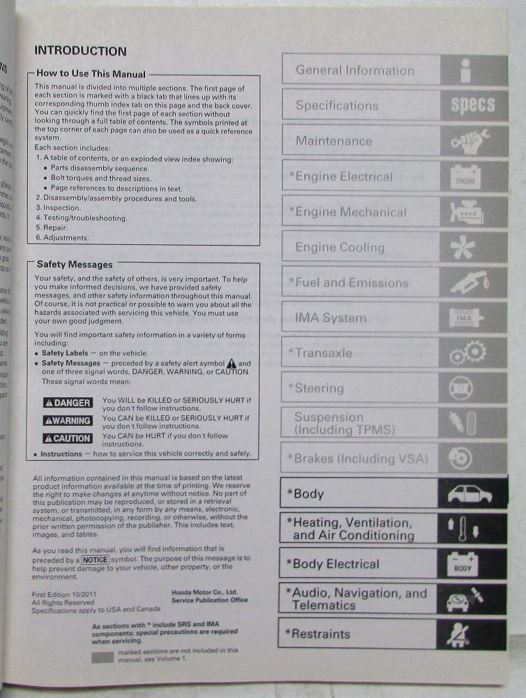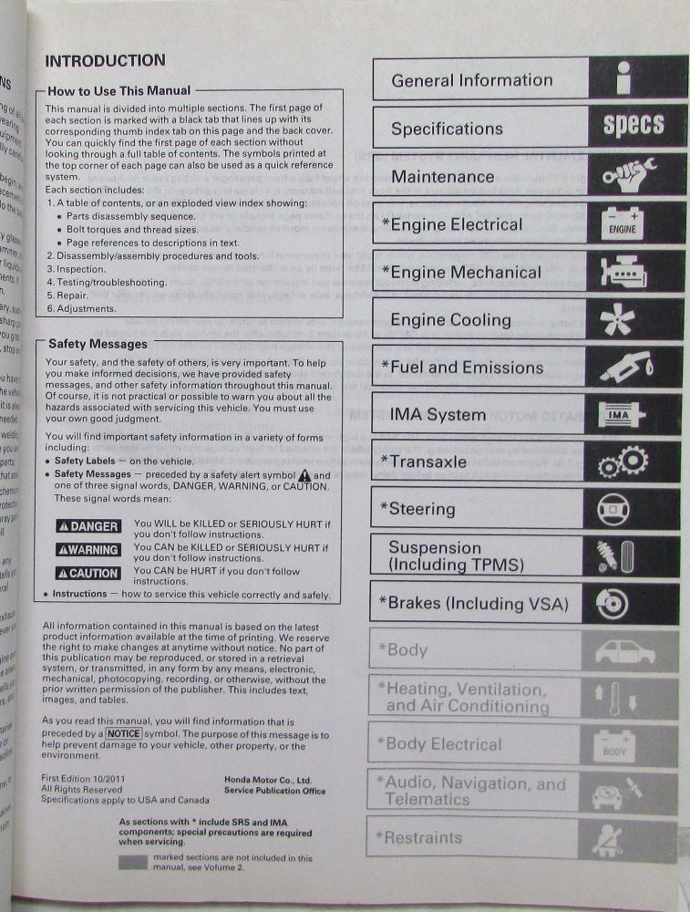 2012 Honda Insight Service Shop Repair Manual. 2 Volume Set. ORIGINAL.