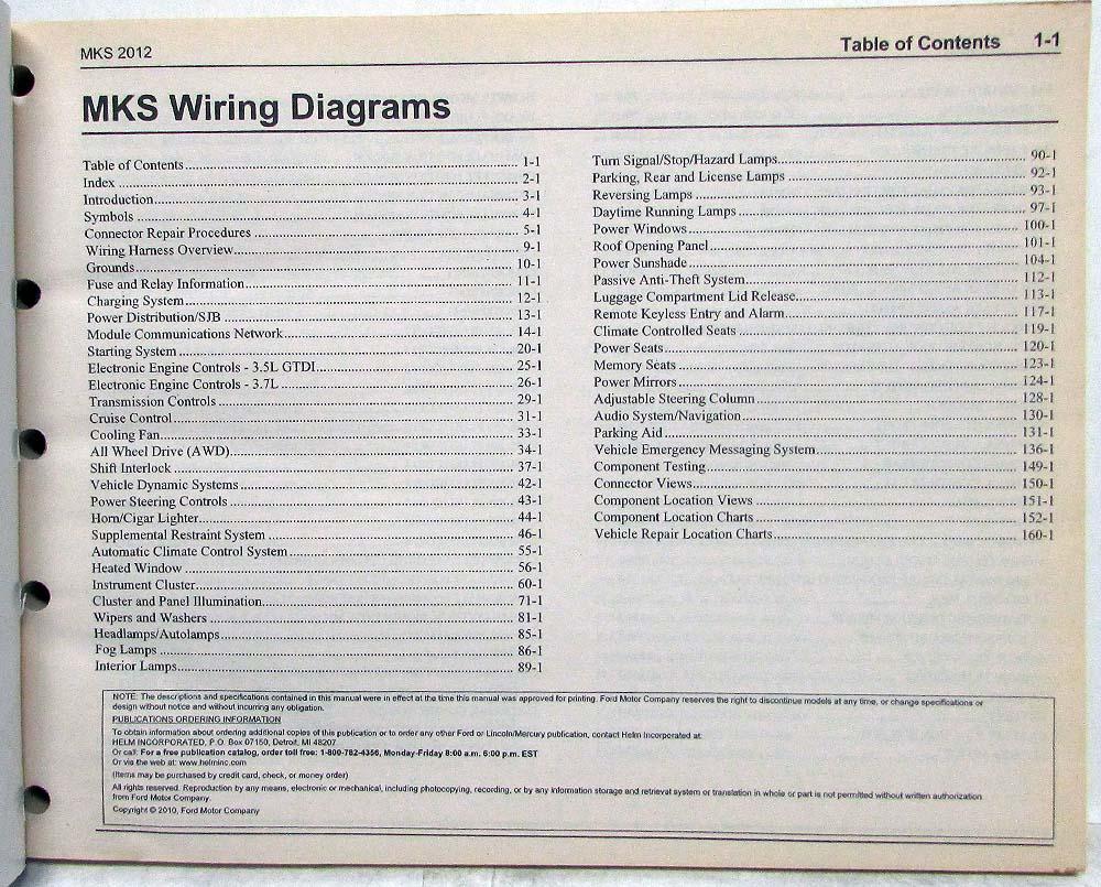 2012 Lincoln MKS Electrical Wiring Diagrams Manual. ORIGINAL. Ford Authorized Manual by Helm, Inc.
