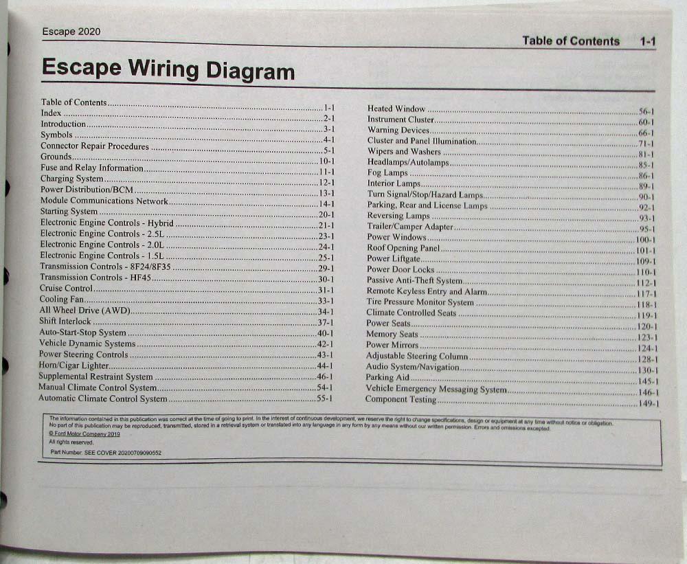 2020 Ford Escape Electrical Wiring Diagrams Manual. ORIGINAL. Ford Authorized Manual.