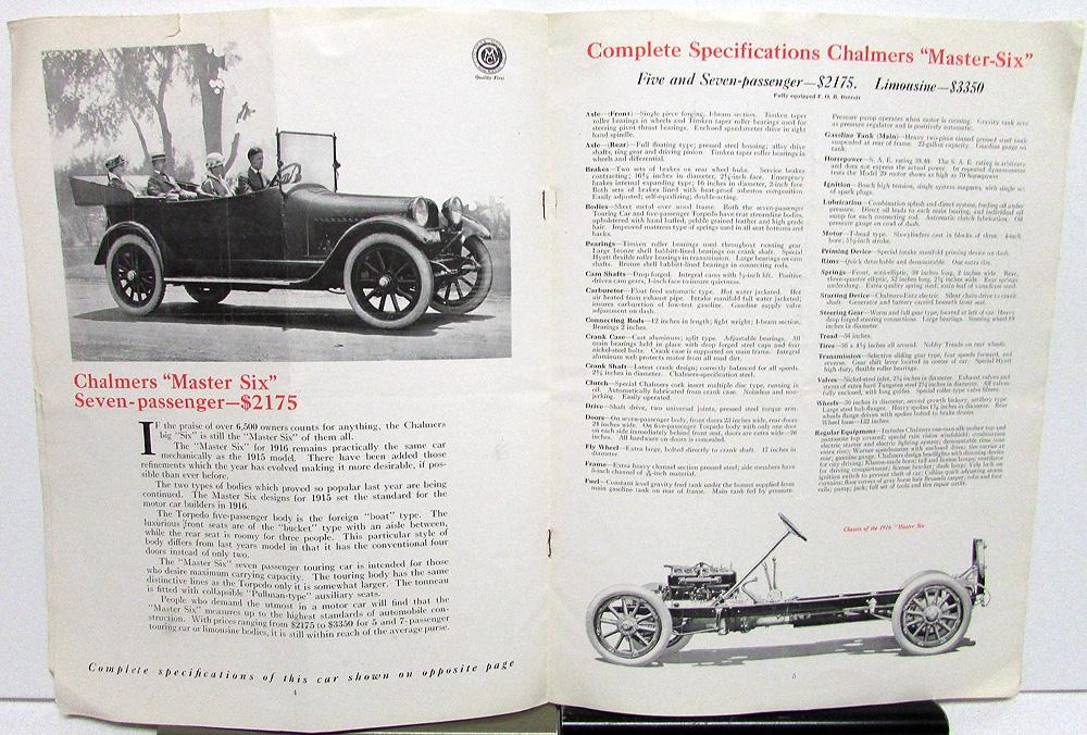 Original July. 1915 Edition of the Chalmers Monogram. This Company Newsletter was sent to Dealers to give them Information and Updates on the Industry and Car Models. This Edition highlights the new 1916 Chalmers Models [Master Six, Six-48 and Six-40]. It is in good condition for its age with some Blemishing and soiling [see photos]. It is creased down the middle from being folded.