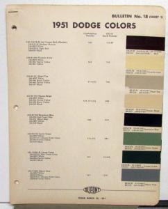 1951 Dodge DuPont Automotive Paint Chip Colors Bulletin No 18 Original