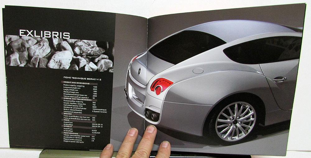 Early 200's Laraki Exotic Car Foreign Dealer Sales Brochure. This beautifully illustrated French Text Brochure highlights the Borac and Fulgura Exotic Car Models. It is in very good condition with minor wear [see photos].