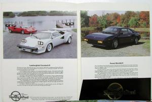 Set of 3 Exotic Car Literature Pieces. This Set includes: a 1990 Mercedes-Benz 500SL Coupe Press Kit from the South Florida Auto Show, a Mercedes-Benz European Delivery Program Brochure, a Steering Wheel Exotic Car Dealership Sales Portfolio featuring Ferrari, Lamborghini, Porsche and more. All are in good condition with minor wear and blemishing [see photos].