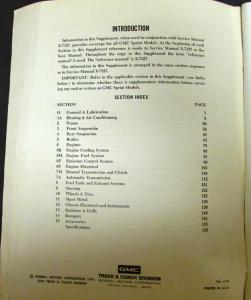 Original 1974 GMC Truck Dealer Service Manual Supplement. This Shop Manual covers the Sprint Models. These are what the Dealerships used to service and repair your truck. It has information, illustrations, diagrams, specifications and procedures to maintain your vehicle. It is meant to be used with the 1973 Service Manual. Very informative and useful tool for the GMC Owner.