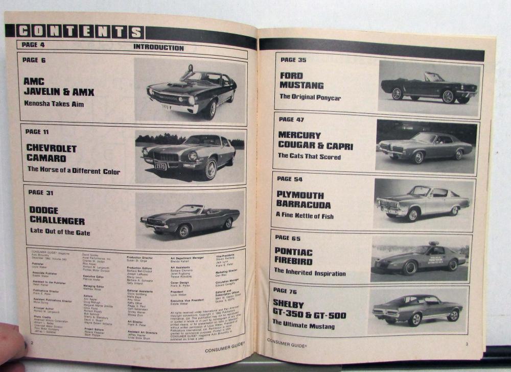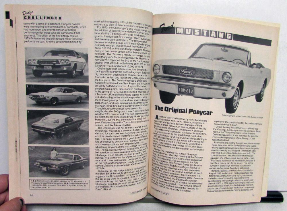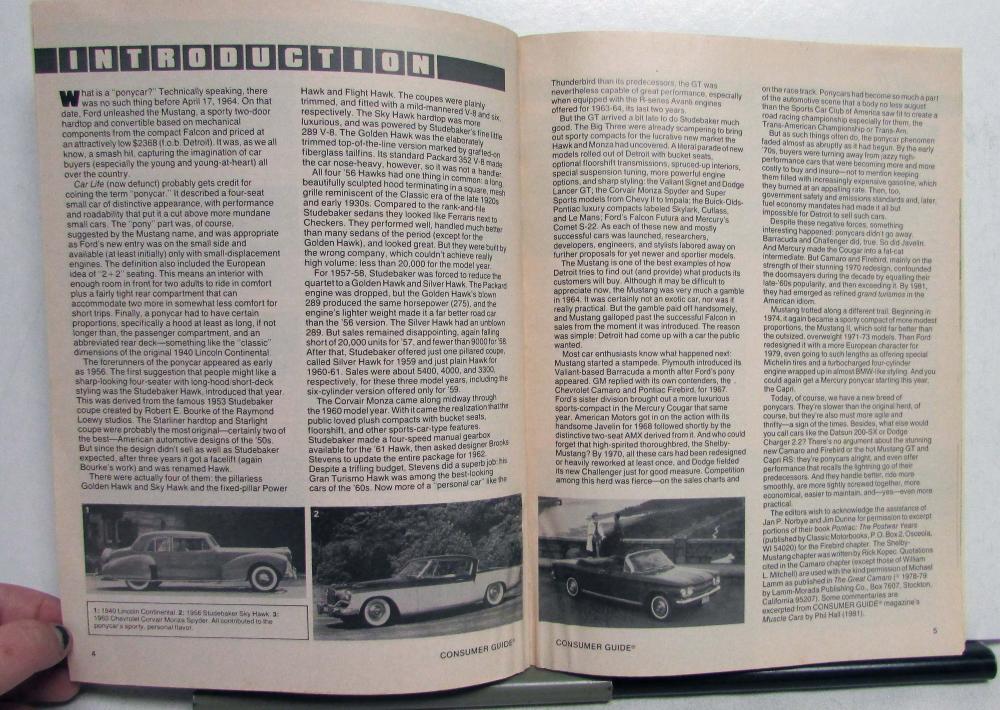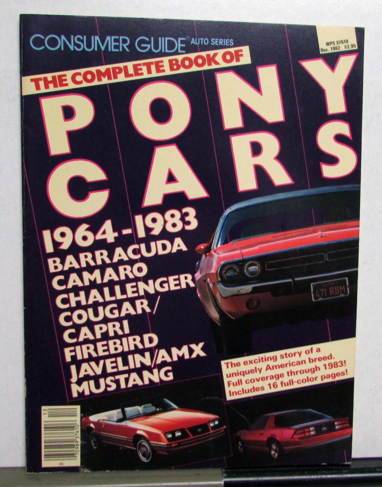 Consumers Guide Auto Series The Complete book of Pony Cars from 1964-1983. The exciting story of a uniquely American Breed. Full coverage through 1983! Includes 16 full-color pages! Born of the sporty compacts of the 60's, pony cars have been an exciting part of the automotive scene for some 20 years. The Complete Book of Pony cars is the fascinating story of this uniquely American breed- from the first trendsetting Ford Mustang to today's high-spirited Mustang GT... from AMX to Z28. This book is in good condition but has obvious signs of discoloration and minor wear, see photos for reference.