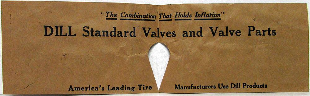 Original DILL STANDARD Valve and Instanton Dust-and-Valve Cap instruction card which would have been attached to tire valve for customer's information. Neat piece of memorabilia. Nothing to date the piece, approximately late 1920's to 1930's. Two sided with one center fold.